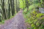 De weersverwachting is regen, dus we besluiten een kleine rondwandeling te maken om Chateau Reinhardstein en langs Warche. We pakken onze rugtassen en wandelen over een smal pad richting Chateau Reinhardstein. Via een ontzettend steile weg dalen we snel af. Door de regen van afgelopen nacht is het steile pad ook nog eens glad, dus we letten goed op dat we niet uitglijden. Jammer genoeg gaat het wandelpad aan de andere kant van het dalletje direct weer steil omhoog. We komen uit op een grotere bosbouwweg waar we langs een gekapt stuk bos wandelen. Het voordeel dat dit bos gekapt is, is wel dat het Chateau Reinhardstein zeer goed zichtbaar is.