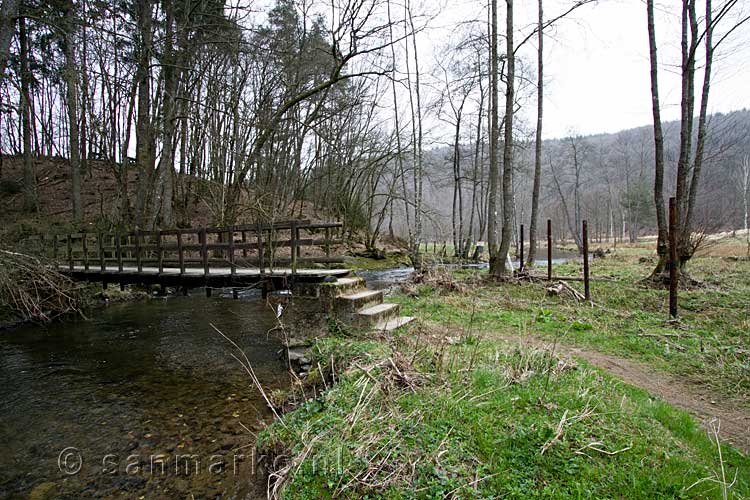 De brug over La Houille tijdens onze wandeling bij Vencimont in de Ardennen in België