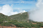 Richting de noordkant van La Palma hebben we een goed uitzicht over de kustlijn. Het uitzicht aan de zuidkant is wat minder, de wolken blijven in de Caldera de Taburiente hangen. We lopen door naar de Roque de los Muchachos en komen aan bij een grote parkeerplaats. We hebben het eindpunt van de wandeling bereikt. Tijdens lunchtijd is dit een plek waar veel touringcars stoppen om lunchboxen uit te delen aan de toeristen. Wij gaan ergens op een steen zitten en eten onze broodjes op en genieten van het uitzicht over de Caldera de Taburiente op La Palma. Doordat de warme lucht opstijgt en afkoelt ontstaan er wolken die langs de wanden van de Caldera de Taburiente omhoog komen. Dit geeft een spectaculair uitzicht! Helaas hebben we geen mooi uitzicht over de Caldera en zuid La Palma, deze zijn gehuld in wolken.