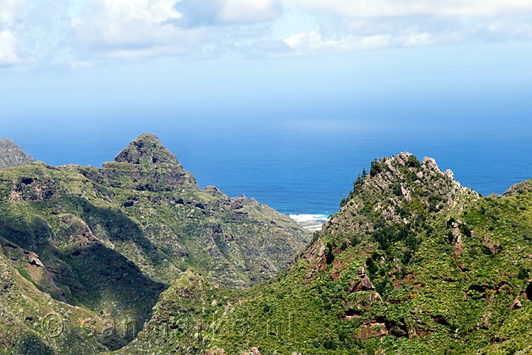 Vanaf het wandelpad door het dal bij Punta del Hidalgo uitzicht over de noordkust van Tenerife in Spanje
