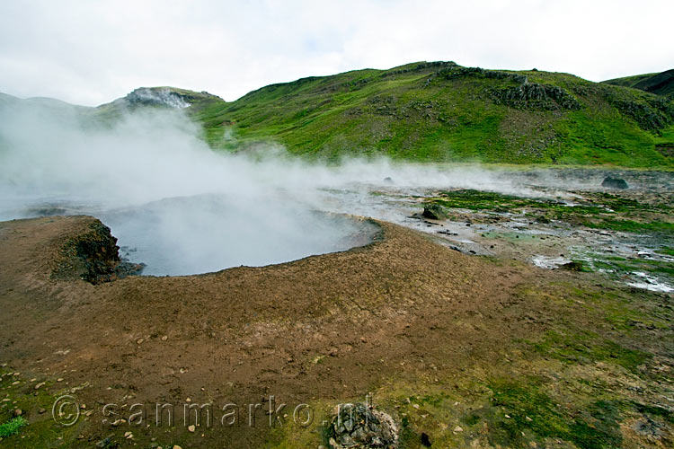 Nog een stomende slijkpoel naast het wandelpad in Reykjadalur bij Hveragerði