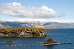 Het is schitterend weer en daar genieten op deze zaterdag meer mensen van. We nemen onze rugtassen mee en wandelen over het populaire wandelpad in de richting van Hellnar. In het begin van de wandeling zien we in de weilanden verschillende weide vogels. Dan wandelen we de eldhraun in, de oude lava stroom van de vulkaan Snæfellsjökull. Over een leuk pad wandelen we, kijkend naar de meest coole creaties van lava. Sommige van deze schitterende lavacreaties hebben een naam gekregen, sommige zijn gewoon mooi maar naamloos. We komen regelmatig andere wandelaars tegen die hetzelfde populaire pad tussen Arnarstapi en Hellnar wandelen.