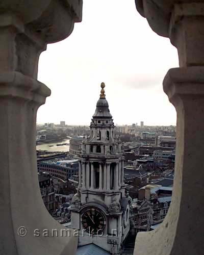 Uitzicht door de pilaren vanaf de koepel van St. Paul's Cathedral