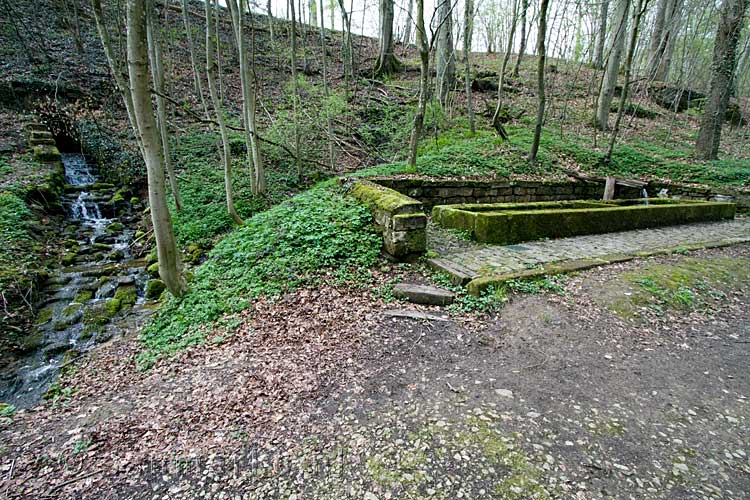 Een waterreservoir langs het Fred Welter Pad bij Berdorf in Luxemburg