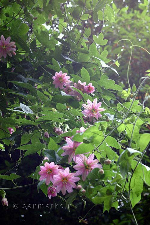 Vanaf het wandelpad bij Ribeira da Janela zien we passiebloem (Passiflora) op Madeira