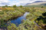 Aan de westkant van Fokstumyra Natural Reserve was een vlonder pad zeer welkom geweest. We omzeilen de diepste plassen, maar door de drassige bodem zakken we regelmatig tot onze enkels weg. Het wandelen is zwaar en wordt vervelend. Het uitzicht over het meer is wel leuk, maar we hebben alleen maar oog voor de zoektocht naar het beste stukje wandelpad. Ook waren op sommige stukken boomstammen gewenst. We wandelen zo goed als we kunnen naar de andere kant van het meer. We steken het meer weer over en wandelen langs een ontzettend leuk, mooi beekje terug naar de ingang van Fokstumyra Natural Reserve. Het wandelpad blijft drassig, maar we staan in ieder geval niet meer tot onze enkels in het water.