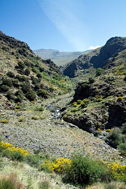 Het wandelpad door de mooie Poqueira vallei bij Capileira in de Alpujarras in Spanje