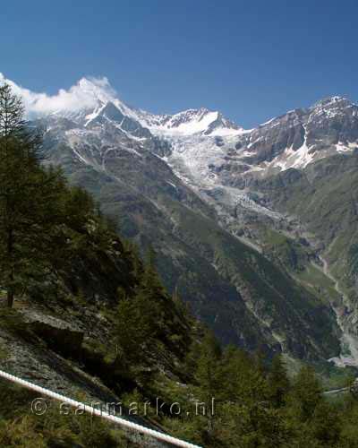 De Schaligletsjer onder de Weisshorn gezien vanaf de Europaweg in Wallis in Zwitserland